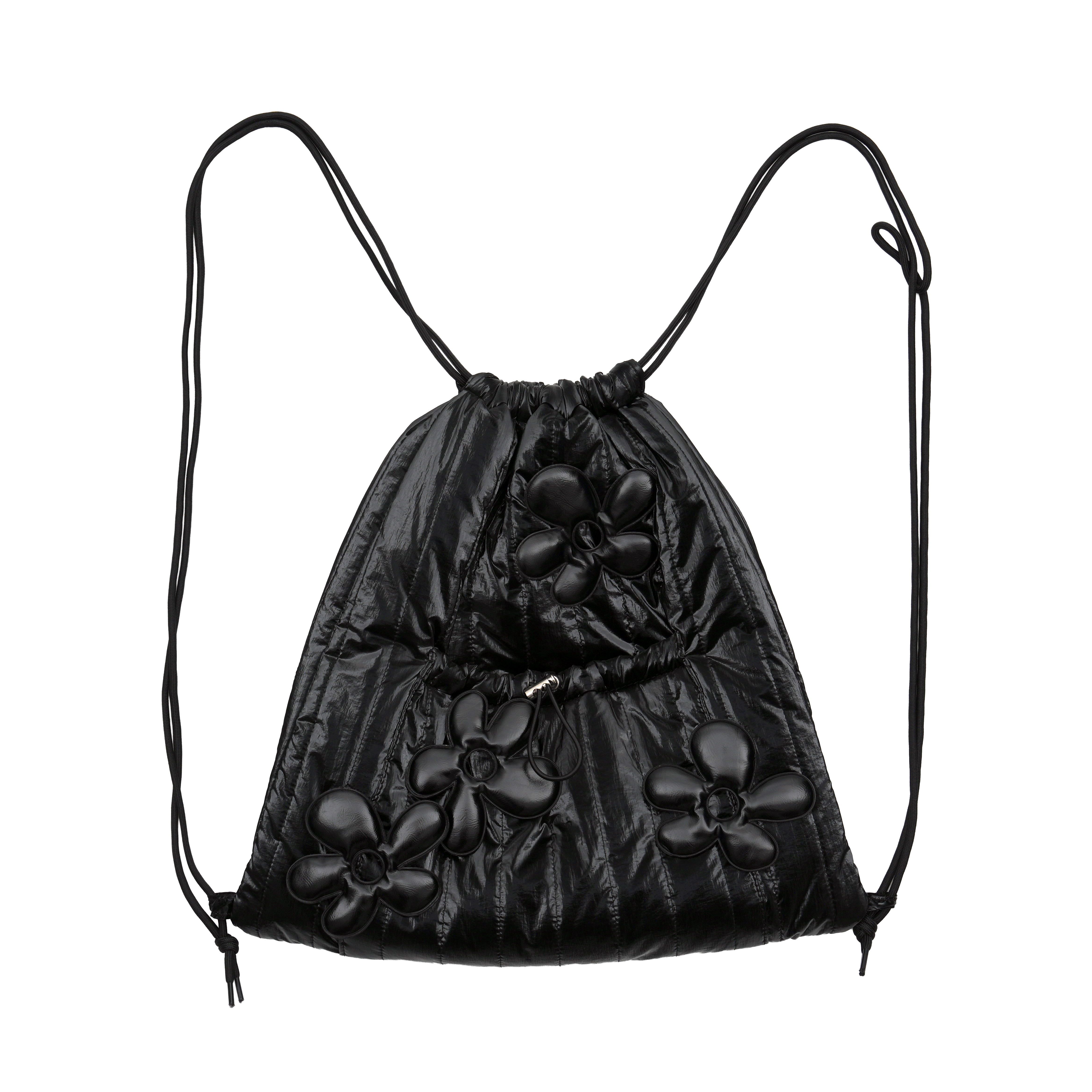 [DOSAN] glossy flower string bag black